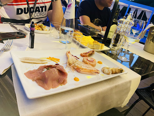 Siamo andate in due attratte dalle foto dei piatti nella galleria. Curati, raffinati. Il locale Ê molto bello specie in esterno, notevole. Tuttavia arrivati al dunque Ê stato una grossa delusione. Il servizio pessimo e poco professionale. Disattenti, un po arrogantelli e poco disponibili. Se un cameriere/a che fa male il suo lavoro ha anche la faccia tosta di rimbeccare un cliente... Arrivate il tavolo era sporco di cenere, sedute ci chiedono se vogliamo l'acqua (piuttosto che chiedere cosa vorremmo ordinare da bere) chiedo acqua e un calice di prosecco. Arriva il calice dopo mezz'ora, per l'acqua dobbiamo chiamare un altro cameriere. Arrivano i due antipasti, mangiamo chiacchierando si avvicinano in due volte per chiedere 'tutto bene' ogni stavamo mangiando e sistemando i piatti come per valutare se portarli via o no. Molto irritante uno che ti toglie il piatto di sotto mentre mangi! Arrivano i secondi 'fritto di paranza' e 'gran grigliata' specie la grigliata si presenta molto bene. Ma il fritto è decongelato, fritto in olio vecchio, rinsecchito e salato. La porzione era x tre ma un disastro. La bella grigliata era insapore, dalle patate (cattive che diamine sbagliare le patate al forno ce ne vuole...) al pesce. Abbiamo lasciato lÏ piu della metà di tutto. Dolci ci propongono tiramisÚ alle ciliegie ma poi si scopre che le ciliegie son finite. Io chiedo una tenerina con gelato allo zabaione e che mi arrivi contestualmente al caffè. La cameriera fa un risolino e dice che sarà impossibile perchÊ bar e cucina son due 'enti differenti'....eh?? Infatti arriva prima il caffè che rimando al mittente, dopo 10' arriva il dolce seguito dal caffè appena tiepido (mi son sentita presa in giro) Il dolce è arrivato senza posate. La tenerina al cioccolato era asciutta, la porzione per 2, il gelato allo zabaione non era gelato ma una pozza di mascarpone. Lasciato mezzo. Finito il dolce nessuno passa a chiedere alla mia amica se prende un caffe o un liquore. Ci alziamo nauseate dall'odore di fritto che pervade la sala che McDonalds gli fa un baffo. Alla cassa la solita domanda di rito 'tutto bene?' Rispondo '...insomma' ma capisco che è solo un rituale in realtà non gliene frega nulla. Morale 2 antipasti (scatoletta d'acciughe con crostini imburrati e sautÊ di cozze) 2 secondi (fritto e grigliata) 1 dolce 1 caffe 1 sorbetto 2 calici prosecco 1 acqua imbottigliata da loro
