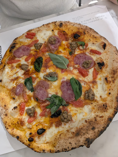I was excited after reading the great reviews, so we stopped by for dinner. We were seated immediately (2 adults and 3 kids). The kids ate at the holiday market in the park, so I promised them dessert to keep them occupied while we ate. When I asked about dessert, the waitress said there was none. I said tiramisu, and she said no, even though I saw takeaway servings in the cooler at the front and saw reviews with fried dough on multiple reviews. With some grumpy kids, we got 2 pizzas. One was great (veggie) and one was so soggy the middle parts of each slice fell off. It was a buffalo margarita, and I’m not sure why the crust was so different from the other. I’d give the one pizza a 5* rating and the soggy one a 3*. But what left me bothered was a 2 Euro op seating fee that was not posted or mentioned. Since we had 2 adults and 3 kids, it was 10 euros unexpected- for 2 pizzas and “no dessert for you”. I trust that others had a better experience but the table fee was certainly over the top. I’d probably try again...