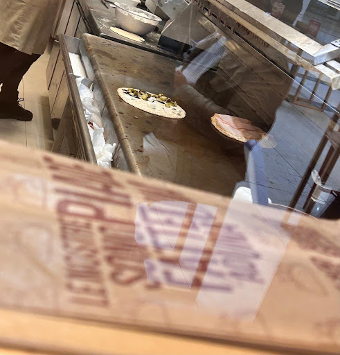 Read moreLa piadina tirata al momento, ho chiesto una piada khorasan ma mi è arrivata normale perdendo un euro, me ne sono accorta mentre la mangiavo, dovevo rientrare al lavoro e ho lasciato perdere…. Ho personalizzato la mia piadina: salmone formaggio spalmabili zucchine grigliate e rucola. Sedendo proprio al banchetto da cui si vede lavorare le ragazze vedo lo svolgimento dell’assemblaggio della mia piada: due ciuffi di formaggio di cui uno proprio davanti la piadina da dove si addenta, così si inganna il cliente, zucchine grigliate 3 sparse, salmone e rucola quantità sufficiente. Sempre dalla vetrata vedo due ragazze che lavorano, quello che non mi è piaciuto è vedere pulire il banco con una pezza fucsia e passare a farcire la piada senza lavarsi le mani, passare da un punto all’altro della cucina senza mai lavarsi le mani, anche con i guanti bisogna lavarsi le mani, perché se con il guanto tocco la pezza che serve per pulire poi non tocco la piadina! In generale le piadine sono proprio scarse di...