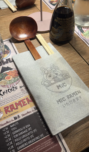 Avendo provato altri Mic Ramen (Parma e i due di Firenze) mi dispiace constatare che la qualità del cibo è la stessa: sufficiente ma niente di che. Brodo nella norma soprattutto se parliamo del chicken ramen, mentre quello del veggie è gustoso; condimenti discutibili, ad esempio il veggie comprende sempre peperone e mais in modo abbastanza inspiegabile, quando basterebbero funghi o alga nori per renderlo più "classico" (certo si possono aggiungere ingredienti a piacere ma hanno un prezzo extra). Sicuramente la delusione più grande di tutti i Mic provati sono i noodles: industriali, senza infamia e senza lode. Il top però è stato, mentre aspettavamo di pagare, vedere la preparazione del dorayaki: tirato fuori da una confezione singola di plastica e messo in microonde. Capisco che la velocità del servizio sia una cosa fondamentale e quindi prepararlo al volo sarebbe complesso, ma parliamo di una ricetta fatta con un impasto che si può tenere in frigo e cuocere in 5 minuti. Ma da una catena forse è sbagliato aspettarsi troppo, si va lì forse più per la velocità del servizio, i sapori sempre uguali e soprattutto per l'atmosfera molto carina e divertente (che ricorda sicuramente la cultura pop giapponese ma non i locali tipici di ramen, che in Giappone sono anonimi e semplici). Servizio veloce e sorridente. In conclusione, dipende cosa si cerca scegliendo Mic Ramen: di ramen più buoni ce ne sono anche a Modena, di atmosfere suggestive capaci di far rivivere sicuramente l'infanzia di molti, un po' meno. Si può vedere come un buon compromesso ma dopo le varie esperienze fatte non...