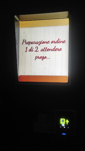 Purtroppo, al nostro arrivo, abbiamo scoperto che la pizzeria era chiusa per la festività. Tuttavia, all'esterno del locale c'era un distributore automatico di pizze, che offriva una pizza al prezzo sorprendentemente basso di 4,50 euro. I membri della mia famiglia erano inizialmente contrari all'idea di prendere una pizza da un distributore, ma alla fine hanno deciso di provarla.