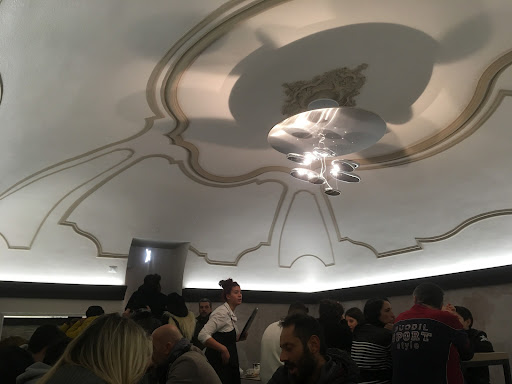 Catturati dalla vetrina e dall'atmosfera all'ingresso, siamo entrati per gustarci qualcosa di caldo visto la giornata fresca. Siamo subito saliti al piano superiore che affacciava sulla via Emilia, trovato anche il tavolino in angolo, avrei quasi detto perfetto se non fosse per il fatto che i tavolini appunto sono attaccati uno all'altro...attaccati davvero! Bella la location, il soffitto alto e il bel lampadario fanno scena.