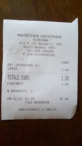 Read moreMi capitava di passarci ogni tanto....una volta non avevano i bomboloni farciti di crema...mi volevano rifilare una ciambella con aggiunta di crema...un altra mancavano i cannoli......i millefoglie.li stavano preparando...non li vedo proprio " sul pezzo"...è nemmeno sul prezzo! Più cara (INGIUSTIFICATAMENTE) di altre pasticcerie di Modena......per la.medesima qualità, nulla di eccezionale! A modena si dice " vola bass e...