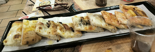 Cibo: C'erano le pizze classiche, mix di vari cibi ecc. Abbiamo deciso di usare la formula all you can eat a 9.90€. Ne vale assolutamente la pena. Comprendeva 4 portate: La prima erano abbondanti fritti misti. Io sono personalmente dedicata con i fritti ma non sono stata male un minuto: l'olio era pulito, erano asciutti bene e non colava neanche un filo d'olio. La seconda erano due tipi di panucci: impasto leggero e condimenti abbondanti. La terza molte tipologie di pizze. La quarta due tipologie di dolci. Tutto era perfetto, caldo, fatto al momento e con amore. Si vedeva che lo faceva con passione e ci ha fatto sorridere.