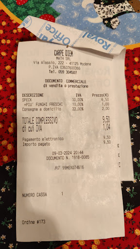 Read moreMi dispiace molto dover dare una PESSIMA RECENSIONE. Pizza Buon. Buoni gli ingredienti. Ma oltre a sbagliare orario (richiesto tra le 19 e le 19.30 me consegnano alle 18.40) che ci può stare, è sabato sera c'è tanta gente. Me la rimandano e il fattorino, un uomo, SENZA MASCHERINA CHE SOPRA LE SCALE MI HA TOSSITO SOPRA IL CATONE DELLA PIZZA? NON voglio screditare la pizzeria, ma in un momento come questo chiunque lavori DEVE AVERE LA MASCHERINA. un pregio va alla gentilissima ragazza che risponde al telefono che ha cercato in tutti i modi un punto di incontro. Mi sarei ovviamente aspettato che parlasse direttamente il titolare. Ma non è stato così. Ovviamente in caso di sintomi particolari saprò...