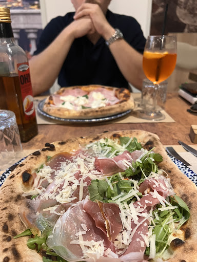 Read moreLasciando stare il posto che è nuovo e la pizza che é molto molto buona, con vari gusti, posso confermare invece che il servizio é stato scadente. Partendo dal fatto che abbiamo prenotato 1 settimana prima per sabato sera alle 21 un tavolo da 11, ci troviamo fuori al freddo, entriamo nel primo deor e diciamo che siamo arrivati, erano già le 21:10 e ci hanno detto che avremmo dovuto aspettare ancora 10 minuti. Aspettiamo perché alla fine eravamo in compagnia e non era un problema aspettare, dato che mancavano ancora 2 persone. Entriamo e ci accomodiamo e subito ci chiedono se vogliamo da bere e nel mentre ordiniamo anche 3 fritti da mettere in mezzo. Il bere (acqua - coca) arriva subito, la birra arriva un pelo dopo, ma va benissimo, però non sai se ti arriverà 0,4 o 0,5 dato che hanno tanti bicchieri e non sempre ti portano una birra media. Nel mentre arrivano anche 2 due ritardati. Portano 2 fritti i su 3, li finiamo e il terzo dopo 5 minuti. Prendono l'ordinazione delle pizze, ma dopo 30 minuti vengono al tavolo a chiederci se potevano infornare le pizze. Era la cena del mio compleanno e avevano organizzato una sorpresa per il dolce, che però hanno rovinato portando prima i piattini da dessert senza averli ordinati. Verso mezzanotte, ci portano il conto, senza averci chiesto se volevano un amaro o un caffè. Ordiniamo alla fine i caffè e amari, se ne dimenticano 2 e nel mentre ci vengono a dire che stavano chiudendo. Ci alziamo in fretta e andiamo a pagare, ci ricordiamo che erano rimasti 3 bomboloni, chiediamo se possiamo portarli a casa, ci portano una busta del pattume biodegrabile con 1 bombolone su 3 che erano rimasti e uno mezzo mangiato, lasciato sicuramente da uno del tavolo che non lo aveva finito. Abbiamo speso poco 30 euro a testa. Però il servizio non è stato...