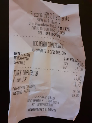 Sono uno studente universitario fuorisede con casa molto vicino alla pizzeria EXPO 2. Ieri sera ho deciso di ordinare due pizze da asporto, ma purtroppo la mia pizzeria di fiducia (Ristorante pizzeria La Vignolese) è chiusa per ferie. Decido quindi di recarmi in questa pizzeria poichè è la più vicina da raggiungere a piedi. Non l'avessi mai fatto.
