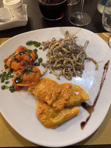 Si comincia con due dei sei coperti non apparecchiati, si prosegue con i menu preimpostati dal ristorante,ma in particolare alla richiesta di ciò che contiene il menù proposta dello chef da 25€ la padrona risponde che non lo sa e che decide lo chef sul Momento in cucina, quindi se siete intolleranti o allergici lasciate proprio stare il "menù al buio", io lo trovo senza senso, mi aspettavo un "menù del giorno". Dopo aver preso con difficoltà le comande, con pezzi mancanti e opzioni dei menù neanche contemplate, ad esempio ad uno di noi non è stato chiesto cosa volesse nel contorno compreso nel menù e invece a due di noi che hanno scelto il menù più costoso, quello da 30€ è stato bellamente comunicato che non avevano la possibilità di scegliere fra i due primi proposti perché le rosette non erano disponibili, e che quindi si sarebbero dovuti accontentare dei tortellini in brodo. Dopo più di 30 minuti di attesa arrivano i primi è la cameriera ci chiede di chi sono i tortellini con la panna ma ovviamente chi aveva preso il menù al buio non sapeva cosa dovesse avere e i due menu a €30 sapevano di dover avere i tortellini in brodo quindi la cameriera torno in cucina e chiede di chi siano, Alla fine si viene a scoprire che lo chef ha sbagliato e invece di farli in brodo li ha fatti con la panna. E facciamo passare anche tengo a dire che altre due persone di noi hanno presi due i fuori dal menù ed erano entrambi asciutti e secchi. Arriviamo a i secondi, qui la suddetta cameriera porta i secondi con contorno, asserendo che quel vassoio di patate al forno fosse del menù proposta dello chef quindi la persona in questione comincio a mangiare ma le altre due persone che avevano preso il menù da €30 continuano ad aspettare le loro patatine fritte che avevano scelto al momento della comanda. dopo un po' di tempo ci Decidiamo a richiamare la cameriera e le sollecitiamo i contorni delle altre persone, al che ci dice che quelle patate non erano del menu proposte della casa ma erano degli altri due menù e che il menù da €25 aveva il contorno nel piatto, 4 patate al forno contate di cui in precedenza non era nemmeno stato ha scelto se le volesse fritte o al forno. Nel frattempo all'ultimo di noi arriva la pizza, l'aveva aveva richiesta base Margherita ma evidentemente la cosa è sfuggita allo chef che se l'è ricordato troppo tardi e l'ha macchiata con un po' di pomodoro, al taglio la pizza si presenta poco cotta, Probabilmente perché richiesta doppia pasta. A questo punto del mio racconto tengo a sottolineare che dall'inizio del servizio alla fine con i dolci lo stesso tavolo ha ricevuto 5 cameriere diverse compresa la proprietaria e che c'è un evidente problema di incomunicabilità Fra lo staff e soprattutto fra il servizio e la cucina. Posso comprendere benissimo che era un sabato sera ma ci sono stati troppi errori in una sola serata, era un compleanno e queste persone l'hanno completamente rovinato alla Festeggiata. Ciliegina sulla torta al momento del pagamento del conto si sono persi anche la comanda che, dopo che è stata presa dalla padrona A inizio serata, e portata in cucina, non è mai ritornata al nostro tavolo, quindi abbiamo dovuto dire noi a loro cosa avevamo preso piatto per piatto. Dopo tutto ciò, Io non ci...