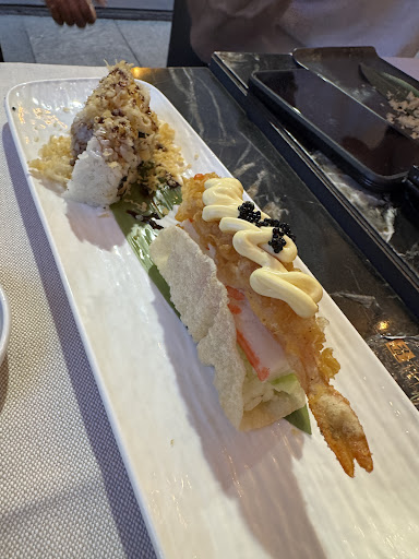 Read moreCosì così... Ci siamo fidati delle 4 stelle di media... A parte l' All You Can Eat che All You Can Eat non è perchè composto da 5 pietanze a testa, il menu e il portale d'ordine web che bisogna obbligatoriamente utilizzare per ordinare al tavolo, non riporta il sovrapprezzo che si applica nei giorni festivi. Di 10 piatti ordinati con la persona con cui ho pranzato, solo 2 sono risultati sufficienti: buoni i ravioli di carne, gli udon col manzo (...ma non il manzo). Pollo alla salsa Teriyaki con retrogusto bruciacchiato, tempura mista con patate crude, sushi stopposo perchè probabilmente preparato un'oretta prima, bao e spiedino di calamaro molto salati, il manzo servitoci era stracotto e nient'altro che una bistecchina misera tagliata a striscioline. Per l'ultimo piatto (2 ravioli di verdure) abbiamo dovuto aspettare circa un'ora perchè era stato dimenticato, anche se, data l'insistenza a chiederci se mancasse qualcosa o fosse tutto arrivato e tutto a posto (passato lo stesso ragazzo 4 volte a chiedere la medesima cosa), abbiamo avuto l'impressione che fosse un modo per liberare il tavolo senza aver ricevuto tutto quello per cui avevamo aspettato e avremo pagato. Il personale è sembrato sicuramente cordiale, ma purtroppo per tutta la serie di cose elencate sopra non penso torneremo e sicuramente non...