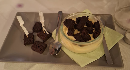 Il dolce è stata una amara sorpresa, infatti il mascarpone con torta tipo-barozzi si è rivelato molto deludente in tutti e due elementi che lo compongono: il mascarpone era troppo liquido, dolce ed eccessivamente tendente al gusto dell'uovo; la torta, secchissima ed amara per il preponderante gusto di mandorla, non aveva niente a che fare con la Barozzi.