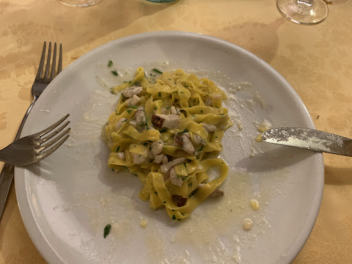 Read moreTortelloni ottimi, servizio assente, prezzo poco chiaro. Ci ha portato un nostro amico promettendoci i migliori tortelloni della zona, e direi che siamo andati bene, e a quanto apre in passato lui ha sempre pagato un prezzo fisso. Con nostra sorpresa, sul tavolo c'era un menu e quando abbiamo chiesto se era cambiata la gestione ci e' stato risposto che tutto era come prima. Fortunatamente abbiamo mangiato solo i primi e il dolce, una bottiglia di vino in tre e l'amaro. In cassa poi il conto era di oltre 120 euro che ha quasi dato un malore alla persona che ci ha invitato... Quindi, i primi erano buoni, anche le rosette, ma non erano tantissimi, il servizio da albergo a pianella di Cervia con vassoi serviti tipo matrimonio e le cortesie da ristoratori credo le abbiano dimenticate in magazzino in quanto i camerieri facevano commenti su ciò che stava accadendo, la nostra guida non era molto contenta e ci e' voluto un po prima di terminare la transazione, che ha creato anche un po di coda in cassa. Una volta usciti siamo stati raggiunti dal tavolo dopo di noi che ha pagato quasi 50 euro a testa e di certo non erano felici nemmeno loro, con la differenza che, invece di presentare il loro disappunto hanno semplicemente deciso che mai torneranno il questa trattoria e anche loro vittime del "fu'" menu a prezzo fisso.
