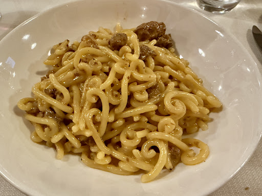 Read moreSadly this was the worst meal I had during my entire two week trip to Italy. I don’t understand how this spot made it on the Michelin recommended list. Service was awful from start to finish even though we were the only customers there for lunch. I ordered the ragu tagliatelle and my husband ordered the gramigna. Both came out cold and lacked in flavor. About three bites in, I felt like I was chewing on a small foreign object and pulled out a little piece of plastic similar to cling wrap. I’m sure it was a mistake but when I notified the waiter and showed him, he just shrugged it off and walked away. No apology or offer to replace it or even take my plate away. The hostess in the front was just as dismissive so we just paid in full and left disappointed. Silly me, here I am worried about microplastics when they’re straight up serving macroplastics...
