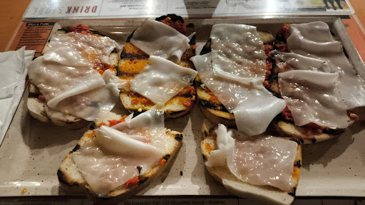 CIBO: Il servizio è di scarsa qualità, ma questo ci può anche stare. D'altronde non si hanno grandi pretese da un pub di questo tipo. Ma quello che è veramente inaccettabile è la qualità del cibo. Non esagero quando dico che non mi era mai capitato di trovare così tanti piatti di così bassa qualità tutti nello stesso posto. Ma vediamoli per ordine: Arancini: erano quelli comperi surgelati, e pure di bassa qualità. All'interno erano ancora congelati... Tagliere di salumi con tigelle: i salumi erano di bassa qualità, ma mangiabili. Il problema è che le tigelle sembravano quelle surgelate riscaldate 50 volte. All'interno erano farinose e si sbriciolavano. Non mi era mai capitato di dover lasciare lì delle tigelle, ma dopo averne provata una sono rimasto disgustato e non sono riuscito a mangiarne altre. Panino rio bravo: è un panino con all'interno straccetti di manzo, cipolla formaggio e salse varie. La carne era stracotta e dura. Ma il vero problema era il pane. Il sapore era simile a quello del pane surgelato, ma in più risultava tirulento come il pane del giorno prima. Non mi riesco davvero a capacitare di come si possa dare da mangiare un abominio del genere. Qua non ci siamo proprio. In un ristopub di questo tipo almeno il pane dovrebbe essere decente, ma qua proprio mancano le basi. In conclusione ho mangiato metà panino perché ero davvero affamato, ma non sono riuscito a finirlo. Nel complesso era veramente disgustoso.