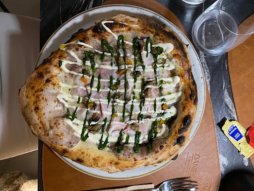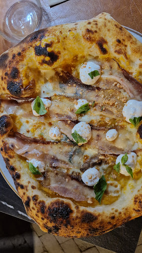 Read moreSi presenta tutto benissimo ma poi la tragedia per le ordinazioni, menù elettronico con sfondo della pagina nero (il locale ha un'atmosfera cupa nella speranza di renderlo più intimo ma è sempre una pizzeria) illegibile per un presbite, l'evoluzione della pizza ha avuto la felice idea anche di cambiare i nomi alle pizze quindi la margherita si trasforma in Pizza Regina. Chiunque potrà dire che basta imparare i nomi ma la pizza è un piatto che è immutato da decenni. Andiamo al peggio: una margherita 10€! Se poi la gradisci senza il bordo napoletano con l'intero panetto stirato alla romana il prezzo diventa 12€ (sostengono che ci vada più condimento). Ripeto 10€ e ancora bisogna aggiungere l'immancabile tassa del coperto e il beverage, qualsiasi altra pizza ha prezzi stratosferici e abbinamenti di gusti discutibili ( ma è una mia opinione sulle pizze Gourmet). La pizza è senza infamia e senza gloria, ricca in prodotti caseari che ben presto solidificano e senza alcuna cura per la qualità degli ingredienti totalmente anonimi. A causa della complessità del menù (ripeto è una pizzeria) abbiamo impiegato 15 minuti per ordinare in 12 persone. Il locale si trova sotto il piano stradale in una grotta (aria stantia e nessun ricambio) e non è accessibile ai disabili visto la presenza dei gradini, l'unica uscita di sicurezza si trova anche dal lato sbagliato della vetrata. Mi complimento per lo sforzo ma ci sono posti migliori a miglior rapporto...