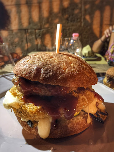 Read moreQuesto locale è uno di quei posti nei quali si capita per caso e di cui si rimane super soddisfatti: poco pubblicizzato anche sui social, non è stato difficile prenotare telefonicamente un tavolo, tuttavia é stato più complicato trovare l’ingresso, poiché questo si trova in una zona defilata rispetto alla piazza in cui è ubicato. Prima impressione incoraggiante: locale pulito e ampio (sono disponibili sia sedute interne -più numerose- che esterne), atmosfera semplice ma curata nel dettaglio e personale giovane e presente. Nel menù si può abbondantemente spaziare nella scelta di panini e hamburger, con invitanti proposte fuori menù. Eccezionali le patate con il bacon, così come le crocchette di patate. Il pane utilizzato è croccante e con poca mollica e le porzioni sostanziose.