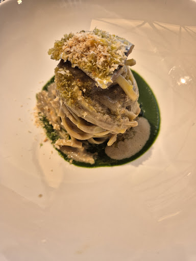 Un plauso speciale al servizio in sala, di altissimo livello, e ai preziosi consigli della sommelier, che hanno reso l’esperienza ancora più memorabile. La panificazione merita una menzione a parte: abbiamo avuto il piacere di assaggiare 6/7 tipologie diverse tra pane, crackers e grissini, tutti straordinari.