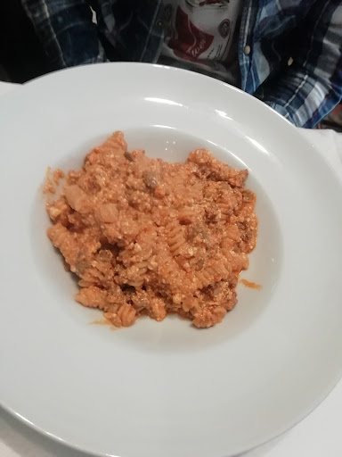 We took a long walk from the center to the restaurant along the old Barack buildings. It took quite a time but we reached the restaurant in bad weather so we had to stay inside. As you can find it in many Mediterranean restaurants we found a very bright neon light inside which is not perfect for the atmosphere. The service was very gentle and the mix salad with the olive perfect. But the pasta dishes were without any flavor even the peperoncino was missing. The main dish with chicken was delicious ,the rabbitdish also but here too some more flavors like garlic, Rosmarin or Thymian would have been nice. Resume. A little bit...