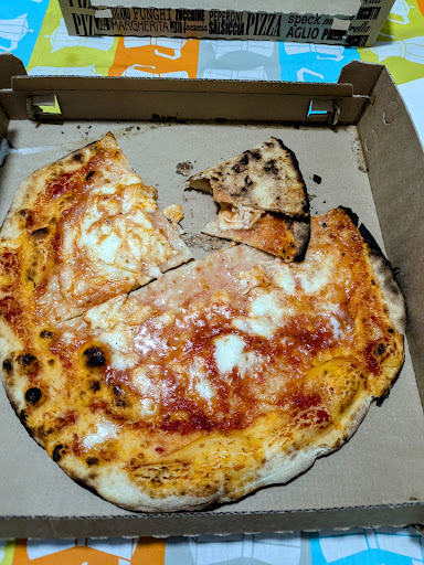 The pizza is very good, the service impeccable and the price is super affordable. The pizzeria doesn't have traditional tables inside, so better to order pizza to take away. Take away service costs only 1€. Many options for pizza, tomato based and without tomato. Even glute free pizza is available. They also have baked panzerotto from Puglia and more pizza...