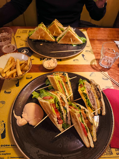 Read morePosto storico a Mogliano, parto dalla poca voglia della cameriera che da quando siamo entrati sì è dimostrata molto scortese non salutando, ordiniamo un club sandwich e io decido di provare il famoso hamburger, mi viene chiesta la cottura della carne (cosa positiva), attesa molto breve (molto positivo), avevo chiesto l'hamburger con cottura al sangue e arriva a cottura media, quasi ben cotto, ci passo sopra dato che la carne era comunque molto morbida, aggiungo che mettere mezza cipolla intera dentro ad un panino mi sembra un po' azzardato, passano 20 minuti e ci vengono portati via i piatti, altri 20 minuti per aspettare il menù dei dolci, nel momento in cui ci lancia (letteralmente) il menù ci chiede "voi avete già mangiato vero?", ci mettiamo a ridere e rispondiamo di sì, passano poi altri 25 prima di vedere di nuovo la cameriera e ordinare i dolci, caffè e andiamo a pagare, 40€ in due, prezzo in linea con quello che abbiamo preso, mi aspettavo addirittura qualcosa in più. Esperienza tutto sommato non proprio positiva, sono state tante piccolezze che messe assieme non hanno reso la serata particolarmente...