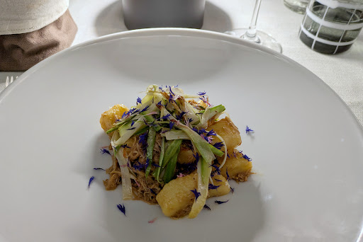 Read moreRistorante ottimo! Cura estetica impeccabile, a cominciare dall'arredamento e dall'atmosfera, e per finire, nella cura dei piatti. Menù non super ampio (aspetto che apprezzo) e per questo mooolto ben curato, per quanto riguarda quello che ho assaggiato io, i gusti sono ben strutturati ed equilibrati. Porzioni a mio parere giustissime (non ci siamo certo congedati con lo stomaco vuoto!!!), e rapporto qualità/prezzo eccellente, i prezzi sono davvero onesti. Personale cortese e attento sotto ogni aspetto, pronti a modificare anche una piccola entrée, pur di accontentare anche i più piccoli! Una menzione particolare va anche al sommelier, che prontamente ci ha saputo proporre diverse varietà di vini da accompagnare alle portate. Nonostante la particolarità dei vini, abbastanza ricercati, i prezzi anche di quest'ultimi restano comunque davvero onesti, sono rimasta sorpresa! Insomma, da ritornarci sicuramente... Anche perché urge assolutamente assaggiare il...
