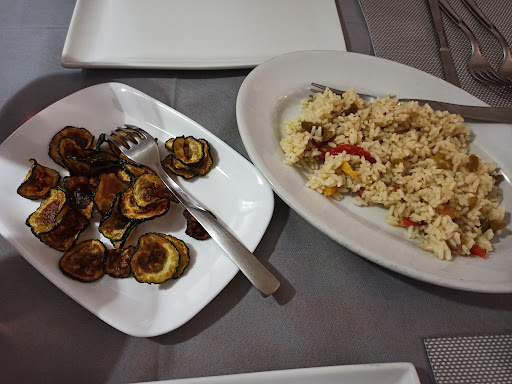 Vi tog menuen til den nette sum af 25 €. Først kom der fem forskellige antipasti, som alle var friske og lækre, den røgede sværdfisk skal lige fremhæves, men alt var "spot on" Så fik vi perfekt risotto med zucchini og rejer. Den fiskefond der var brugt til retten var så lækker... Wow Så kom husets spaghetti med friske tomater og rejer. Perfekt al dente pasta og smagfuld sauce. Som hovedret var der scaloppine al limone eller Entrecote... her var bøffen helt suveræn og slog al limonen. Maden og servicen er helt utrolig god! Vi fik desuden vand, med og uden bobler, 2 x 1 1/2 l cola og én flaske hvidvin. Alt i alt...