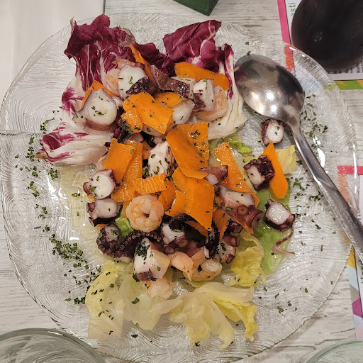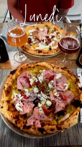 Per quanto riguarda gli antipasti nulla da dire assolutamente deliziosi e abbiamo preso: .Gamberi panati, .anelli di cipolla, .pettoline, .patate al forno (vi è la cipolla all'interno che non ricordo venga specificato), .crudo alla barese e a fette superlativi, .bruschette anche ben cotte e molto saporite grazie anche all'olio utilizzato. Mentre per quanto riguarda le pizze credo dobbiate cambiare assolutamente qualcosa perché non si può portare al tavolo una bruciata al di sotto, una completamente cruda sopra e come scusante: 'ma essendo doppio panetto' allora è giusto mangiarla cruda? Non siete ne i primi ne gli ultimi a cui chiediamo doppio panetto ed è la prima volta che arriva cruda 🤣. Poi è granulosa e gommosa. Io lo consiglio per gli antipasti la pizza no. Ma ovviamente cercherò di ritornare...