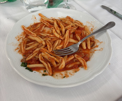 I primi piatti, invece, non mi hanno convinto: nel mio caso la pasta al sugo (che doveva essere con cardoncelli e Norcia) aveva un sugo piuttosto dolce e molto liquido, con poca presenza degli ingredienti principali. (La foto è stata scattata dopo solo tre forchettate, poi non sono riuscito a continuare come gli altri).