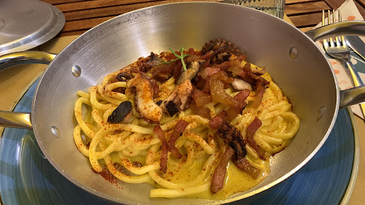 Read moreWe had dinner, a mezzo grill and parmigiana with polpo. The taste is amazing! The products are fresh, the aromas blend perfectly together. The portions were enough for 2 adults and the price for such quality food was very well balanced - 31 EUR, coperto included. I ranked the service with 4 stars as it took more than expected for the girl to take our order, even after raising our hand, her coming over and us asking to place the order, the "1-second" reply we received turned into another 5-minute wait and also we ordered still water and were brought (15 minutes after)...