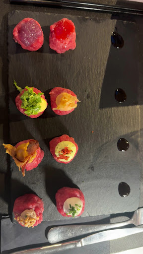 Sono andato con la mia famiglia, locale carino che si affaccia sulla piazza centrale di Moncalieri. ✅ Menu ricco e invitante per gli adulti da provare tutto….. ❌prezzi…. TROPPO CARO!!! Opterei per qualche piatto mix per provare tutto o qualche menù composto ✅Il cibo molto buono carne fresca e di qualità per quel che abbiamo potuto mangiare. ❌Deludente perché non ci sono dei piatti pensati per i bambini. ❌Deludente anche il servizio…. Zero accoglienza, tutti di fretta e asettici quasi da avere l’impressione di dare fastidio 😒 Prezzi come già detto Troppo Caro per le porzioni che si hanno. In sostanza da rivedere un po’ la gestione, il menù d i prezzi perché il locale è una bellissima alternativa al classico sushi 🍣 per chi ama la carne 🥩….