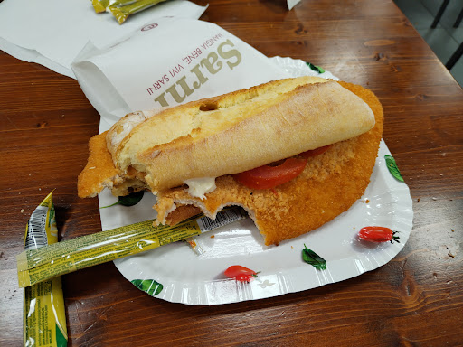 Read moreIn giro con i miei amici bellimbusti Torso Virile Colossale, abbiamo pensato di chiedere a Sandro una trattoria in zona sua dove mangiare. Ovviamente ha risposto dopo seimesi, quindi ci siamo fermati in questo Sarni dove il bellissimo panorama è deturpato da lavori in corso che spero finiscano presto, anche se so bene che son fatti per il nostro bene. Prezzi dei panini sempre ridicoli, ma almeno le pizze sono rimaste buone e dal prezzo tutto sommato contenuto. Grandi offerte di taralli e amenità tipiche di questi luoghi, cassiere felicissimo della mia moneta e, per concludere, tutti mediamente contenti. Consigliatissimo, anche se ammetto che su suggerimento di Ale volevo fare una recensione alla "Andrea Water Scanzi", che dice sia un mago a parlare male dei posti dove va su...