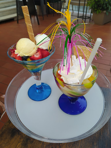 Read moreLocale storico di Mondovì con vista su Piazza e Breo. Arredi storici ma molto ben conservati, si vede dalle finestre di legno e dalle sedie che mi dicono essere le stesse di 30 anni fa ma ancora perfette. Gelato affogato al caramello con un po' troppo caramello ma ho potuto scegliere un gusto diverso dalla crema come base (nocciole, ovviamente) e mi ha reso felice. Caffè shakersto con Baylies buono. Atmosfera rilassante, qualche spiffero dai tavoli vicino alla finestra. A Sanremo al Living garden con il gelato ti portano un bicchiere di acqua incluso, non sono sicuro invece qui di non averlo pagato perché l'ho dovuto chiedere....