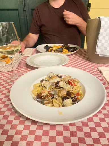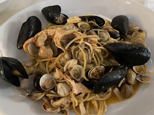 Die „Spaghetti Vela“ mit Meeresfrüchten waren sehr schmackhaft und mit einem Salat Mista und frischem, weichem Weißbrot ausreichend auch als Hauptgericht. Danke für den sehr freundlichen Service! ———————————————————— English: Real outstanding friendly service! Sometimes you feel not welcome in Italy when you ask for a table as a single as it is not common to go out alone and even small tables can rather be sold for 2 than just to a single person!