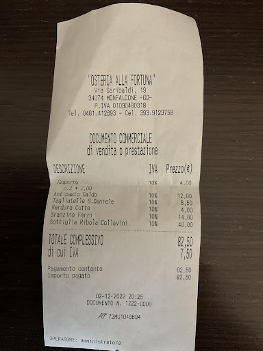 Read moreIl nome avrebbe dovuto farmi scattare un campanello d’allarme… Ci sono recensioni che non si vorrebbero mai scrivere, perché certe esperienze sarebbe meglio evitarle… però quando capitano certe cose, la recensione è necessaria, per evitare che tali esperienze vengano vissute da altre persone. Siamo capitati in questo ristorante per caso, dopo una visita alla meravigliosa Grotta Gigante. Arriviamo al ristorante in orario per la nostra prenotazione delle 13:00. Ordiniamo 3 piatti di antipasto 2 seconde portate e un paio di contorni. Il nostro tavolo si trovava nell’angolo più freddo del locale, avvisato il personale, viene accesa una stufetta che non cambia la situazione, gli spifferi di aria fredda provenienti da fuori ci costringono a coprirci… La richiesta di cambio tavolo viene negata dal personale.🥶 Intanto chiediamo la sostituzione di un paio di forchette sporche… Dopo 45 minuti ancora niente… il primo piatto di crudo San Daniele arriva alle 14:05… il resto della prima portata alle 14:20. Vista l’attesa cancello la mia seconda portata, mentre mia moglie mantiene la sua, speranzosa. Nel frattempo, al tavolo dei nostri vicini viene recapitato il risotto, che viene da loro mandato indietro in quanto avevano ordinato un antipasto… Alle 14:45, siamo costretti ad andarcene… volevamo visitare Aquileia prima di tornare a casa ma questo inconveniente al ristorante ci ha obbligati a cambiare programma e fermarci a mangiare da qualche altra parte sulla strada del ritorno… Magari il cibo sarà buonissimo(purtroppo non lo scopriremo mai) però non si può non servire i clienti: in questo ristorante bisogna avere la fortuna di...