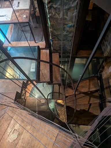A unique address where six medieval houses have been transformed into a labyrinth of grottoes, suspended glass walkways, swirling metallic staircases and bedrooms with floating bed or bathroom carved out of the rock.