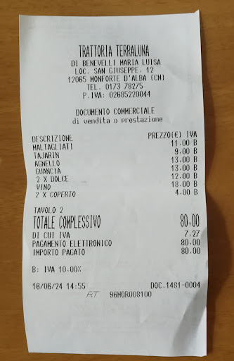 Il tutto accompagnato da una bottiglia di barbera d'alba Seghesio del 2021. Caffè offerto dalla casa Servizio veloce e sia il proprietario che la cameriera molto gentili e disponibili. Una trattoria fantastica, molto elegante dove poter assaporare i sapori delle Langhe in un posto bellissimo. Ci...