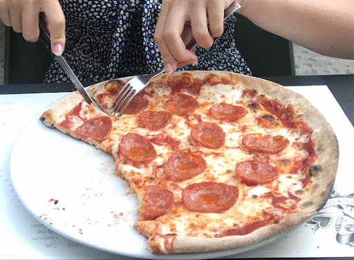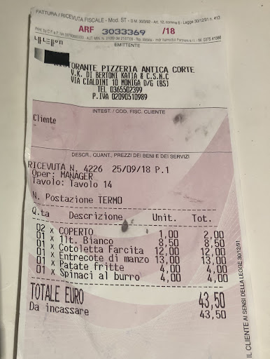 Read moreThe ambiance is good , in an old courtyard with wooden bench seats . The prices are very fair . However the food we had was at best , average . We were disappointed. The spaghetti carbonara was dry and over cooked with the egg going solid. Not enough sauce mainly oil. The calzone looked good on arrival but on cutting it open I saw cheap ingredients such as budget price ham and mozzarella and sliced mushrooms from a can ! Looks like the ingredients all came from Lidl . I have had many calzone in Italy and can say this one was made for the tourist not...