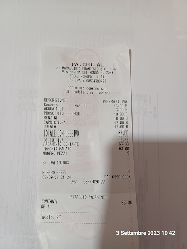 Sul costo del coperto non ho nulla da dire perché si mangia ad un passo dal mare. Anche se non ci sono due olive, due tarallini, niente.