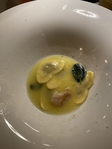 The place strives to be a fine dining experience and our starters were amazing indeed, but that was about it. The waiter was super nice and friendly, but clearly overworked and I feel we didn’t get much attention: it took ages to place an order, get the starter, etc. Also the music was quite loud and I felt like we’re in your average osteria.
