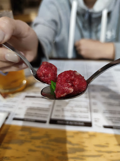 Read moreCHECK DRY AGED BEEF SELECTION FROM INSIDE AND SKIP NORMAL MENU Nice restaurant in tourist area. Outside from the menu you should also check fridge inside that have some beautifull cuts of meats to choose between 55-90€/kg. Atmosphere and restaurant is nice, but for example cardboard plates for first course was quite random?? Nice mini-tartar from the dry aged cut we choose for starters was excellent, dry aged T-bone excellent, sausages excellent, fries, salad and sides more like 3/5. You should build up your own menu according to your preferences together with staff rather than take something from the printed menu...