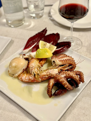 Read moreDonât waist your time/money here. Ordered the grilled seafood and it was literally 4 pieces of over FRIED shrimp (full of panco), and 2 âclamsâ - for 18 euro, it should be at least good quality if not quantity. They took our plate before we were even done with it (we were sharing between two people). I ordered the Orecchiete with rape and shrimp tartare and was brought first of all a mistaken dish (I get it, it can happen) and no one came for about 10 min, so I had to get up to ask for the right one. This took another 10 min at least. When the actual dish came, it was a joke. 2 pieces of frozen shrimp in a small Portion of pasta with, again, TONS OF PANCO (????) and zero flavor. Just broccoli-like with pasta soaked in oil (not even olive oil) and no garlic, no salt, no nothing. I got a stomachache after this. Ridiculous. Additionally, everyone was rude the whole time and would make faces while talking to customers (except for a teenage waiter).