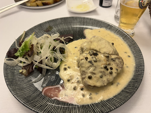 I’m not one to complain. My fiancé ordered a medium steak with wine sauce, baked potato, and I ordered medium-well steak with green pepper sauce and grilled vegetables for us to share (I was trying to cut back on my carbs after 8-9 days in Italy). They mixed the steaks up, her’s was well done (probably was my “medium-well” steak with the wrong sauce) and my steak was cooked medium. Not one to complain (usually) I started to eat my steak. Our waiter was occupied so we stopped our food-runner and requested another steak for her. It came out rare, basically seared, cold, bloody. By this time I was finished, I ate a little less than half the veggies and a small amount of her potato. We told our waiter to cook it more, and reheat the potato and veggies (she likes to mix her food and eat it all together). The potato and veggies came back a little while later, cold, then her steak came out essentially unchanged: rare. She was frustrated and upset because she was hungry, it was the third time she had gotten a steak that was very over or very under-cooked, and I was finished eating. My steak was good, and yes I am apparently an oddity liking medium well steak, it was slightly undercooked to my liking but still good. But she was frustrated. I explained the situation to our waiter and hoping they would have the curtesy to try to remedy the situation I said “she’s not happy” at which point he completely walked away with no further discussion. She wanted to leave at this point, after waiting forever they brought us the bill and took the steak off of the bill. I wanted them to remove the potato and vegetables from the bill because while I ate some, she didn’t get to enjoy them and felt her meal was ruined. Our waiter was no where to be found and a waitress came to take my credit card, I started to explain the situation and my request calmly, she immediately started arguing since we had been served the dishes. She then disappeared to the kitchen and spoke with a man in the kitchen and I don’t recall what he said to me but no one was addressing us, but he apparently said something to me voicing some disagreement with my request and at this point I had enough and lost my temper and demanded “if you don’t remove them I will write a $&/77y review.” He then tore the bill in half and no one said anything to us and we left.