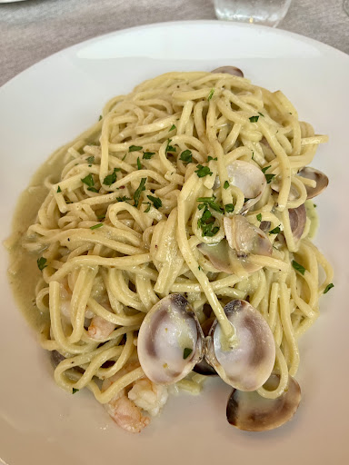 Read moreUna domenica a pranzo per ore 13.30. facendo salti mortali dalla strada per non fare ritardo, arrivati là alle 13.35. ci accomodiamo tutti, aspettiamo mezz'ora per iniziare a prenotare. La cameriera già si vedeva molto affannata. Arriva il nostro turno. Facciamo un menù fisso di 45€ e Menù baby. Iniziamo a mangiare alle 14.55 dopo che i bambini avevano fame e si sono divorati tutto il pane. Iniziano gli antipasti per i grandi, direi quei pochi antipasti, e l'antipasto baby neanche da lontano lo vedevamo. Finiamo e subito dopo arriva l'antipasto baby( prosciutto e mozzarella). Poi arriva il primo primo direi buono, il secondo primo linguine che sapeva di sugo acro e poi la frittura centrale che direi un 6 é più che sufficiente. Nonostante le nostre lamentele che ancora non arrivava il primo ai bimbi, il freddo inizia a farsi sentire nel gazebo xké il sole era andato via e chiediamo per accensione fungo che avviene sempre dopo una 20 di minuti. Alla fine il titolare viene a scusarsi per l'attesa giustificandosi che era tutto fatto al momento e potremmo crederci, ma con 3 camerieri in tutta la sala piena dove vuoi andare??? Poi alla fine il conto finale e mi fa' pagare l'unico Menù baby a 20€ mangiando solo l antipasto e le orecchiette (lasciate tutte nel piatto) xké arrivate tardi e la bambina si erano riempita di pane, e chiedo perché quel prezzo nonostante non avessi più voluto la cotoletta e patatine. Risposta: il Menù baby 25€ e meno la cotoletta =20€. Non ha saputo neanche fare l'intelligente togliendo quelle 20€ per scusarsi del ritardo ecc... Siamo andati via alle 17.45. quindi si può capire...