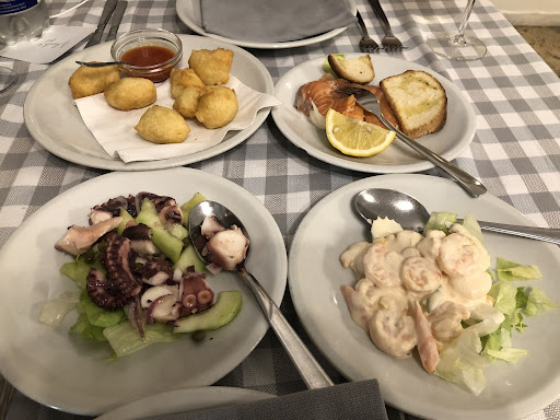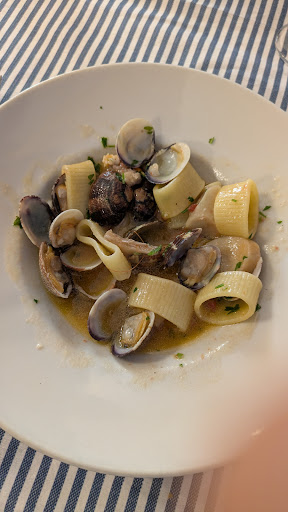 Read moreWe ate twice at this very pleasant restaurant. Although it is on one of the main streets of the Cento Storico, it benefits from a more private seating area outside as opposed to other places further along where the passerbys brush past your table. As others have noted, the complimentary fried bread with marinara is a delightful way to start the meal. We started with mussels gratinate. Plump and sweet with a cheesy crust that inspired us to keep scraping the bowl even after it was empty. We followed with Spaghetti alle vongole for my husband, and agnolotti in pink cream sauce with tender shrimp for me--a delicate yet indulgent dish that I would certainly order again. The house white was very good. It was a treat to receive the complimentary dessert pastries. They were hot and fresh. I couldn't resist in spite if a burnt tongue and a coating of powdered sugar on my face--well worth it! The staff was friendly and efficient. We enjoyed our lunch so much, we returned for dinner during our stay and relished an equally...