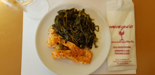 Frequento il locale un paio di volte la settimana, quando decido di fare pranzo nella pausa lavorativa. Nella zona ci sono tanti locali, dai self service a ristorantini etc etc. Tutti che lavorano prevalentemente con gente che lavora e come me non hanno la possibilità di tornare a casa per pranzare. Io nel corso di qualche anno li ho conosciuti un po' tutti, i prezzi più o meno sono i medesimi, la differenza a mio parere, al Magic, è data dalla qualità dei prodotti, dalla presentazione dei piatti in vetrina, dalla pulizia estrema, dalla bontà di ogni cosa mangiata e dall'ambiente familiare che si crea, essendo un locale a portata di vista. Specialisti nelle verdure, trovate di tutto, le prendo spesso e sono eccezionali. Buoni anche i primi. In questo caso ho scelto il salmone e contorno di cicoria. Papille gustative in estasi. Bontà, gentilezza, professionalità, famiglia Tutto questo rende il locale...