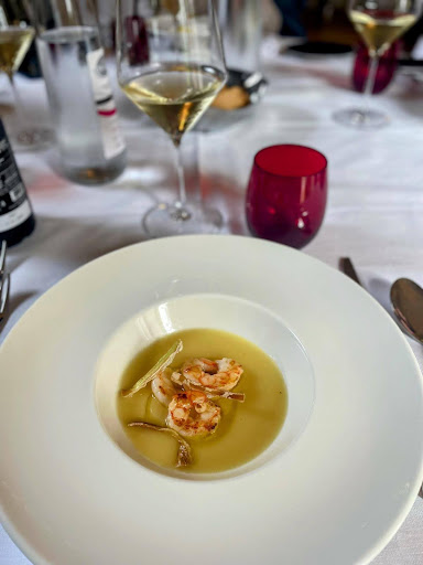 Il cameriere che ci ha accolto (forse anche proprietario) non é affatto accogliente e professionale, mette a disagio i clienti che arrivano con 10 minuti di ritardo rispetto alla prenotazione ..portate buone ma appena sotto le aspettative ...visto il nome,..Abbiamo ordinato gli antipasti e nell indecisione sul prendere un primo o un secondo in due abbiamo chiesto se potevamo intanto iniziare con gli antipasti e strada facendo decidevamo ...ma...ci é stato subito negato categoricamete.Dovevamo ordinare tutto subito....che dire una cena con il fiato sul collo...pronto come un avvoltoio a sparecchiare appena lasciate le posate.....sempre sotto osservazione.....e pensare che era un venerdì, esattamente il 31 maggio (giorno del mio compleanno) e c erano solo 4 tavoli occupati....noi eravamo in 2 ,non in 20....e siamo arrivati alle 21:15 .....conclusione...Mai Più. Delusa del servizio . Cibo buono....