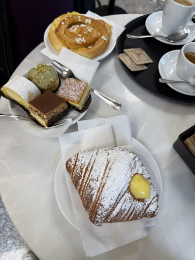 Read moreDi passaggio per Monselice con la compagnia che data l'ora e la temperatura esterna esigeva una cioccolata calda , siamo entrati in questo locale ,ampio ,luminoso ed ordinato ,ma chissà perché il mio orologio temporale mi ha fatto tornare indietro di qualche anno,ai racconti degli anziani , quando in centro ci si andava in occasione del mercato o la domenica ,ed ho immaginato la presenza di persone col vestito buono che si facevano servire il vassoio di paste da portare a casa per fare festa ; Qui si respira il profumo d'altri tempi , anche se ci sono rimasto un po' male di non trovare alcuna sedia per accomodarmi, probabilmente una scelta aziendale per evitare il bivacco ; Consumazione tutto sommato buona e prezzo nella...