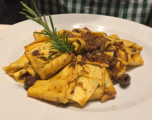 I'm an American and have no idea if this is true, but I imagine this is the place all of the locals eat. Hands down the best meal we had in just over a week in Italy. This isn't a Michelin star type restauraunt, but it isn't trying to be. Every single thing we had was phenomenal. On top of that, the staff was very welcoming. We came in kind of late and by closing time I was trying to get out as to not keep them late - they didn't seem bothered in the slightest, and were even offering us dessert and other courses. They were also extremely accomidating to my fiance who has celiac disease. We walked out of there after having a cheese plate, a carafe of some of the best house wine I've ever had, an entire pizza, three courses of various pastas, what I'm assuming was homeamde (but in any case spectacular) bread, and it was only around $65. Like I said, easily the best meal we had all week and definitely worth the pleasant 10 minute walk if you're staying at...