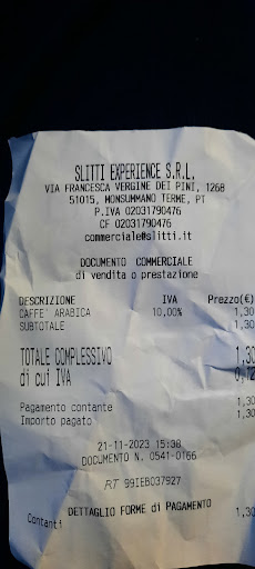 Read moreHo avuto il piacere,su consiglio di un amico,di recarmi per la prima colazione al caffe'cioccolateria Slitti a Monsummano terme. Indubbiamente,essere accompagnato da un navigatore agevola il percorso che causa sensi di marcia,puo' essere un pochino ostico. Ho mangiato un ottima brioche ma il meglio di loro l'hanno dato con il caffe'! Forse definirlo semplicemente caffe' e' riduttivo. In un bicchierino multi strato sono miscelate ad arte diverse dolci bonta' sormontate infine da panna(probabilmente la piu' buona che abbia mai assaggiato. L'offerta di cioccolato dei piu' svariati formati e gusti sono certo soddisfera' anche i palati...
