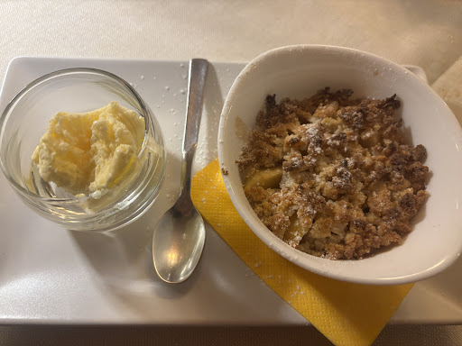 Absolutely delicious. The biggest and most important highlight here: tiramisu. Donât let the size make you think you should share - itâs best served personal! The tiramisu has little chocolate chips in its layers that donât overpower. It is in the top 5 best tiramisus of my life. The apple crumble is also lovely, and is prepared fresh and warm! The gnocchi is delicious and a generous portion. Itâs baked with mozzarella which keeps each bite fresh fluffy and hot as you work your way through the dish. The chicken is wonderful as well, just note that itâs cooked to your liking (they are happy to cook it a bit longer for you). The carpaccio was super fresh and a great portion for sharing. A 1L of delicious red wine is available starting at 10âŹ!