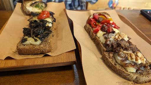 Read moreFantastic display of sandwich boards ...each is so colorful, made with a perfect pairing of flavors, and in an incredibly delicious integrale bread as the base. This day the case included porcini mushrooms, zucchini gratinate, eggplant and sundried tomato, caramelized onion, cime di rape, and so many more. All with pecorino cheese and served warm. They continually make these so each is fresh . The incentive and colorful display reminded me of the cicchetti of Venice ....all original and hard to choose which to get! Loved it,...